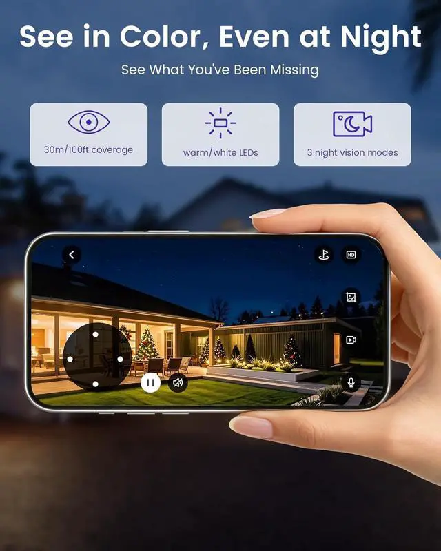 4K Ultra HD & Clear Details Day & Night A true 4K lens with an f/1.6 aperture captures crisp details in any light. With built-in IR LEDs, see up to 30m/100ft for clear, full-color night vision. Day or night, every corner stays visibleso your security never misses a thing. Perfect for monitoring homes, businesses, and outdoor spaces with confidence.
