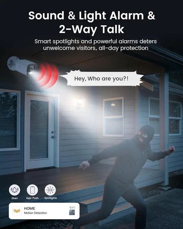Smart AI Detection, No Subscription Required No False Alerts & No Monthly Fees! Our advanced AI knows the difference between people, cars, and false triggers. Get instant phone alerts only when it matters. Plus, use two-way audio to speak directly through the cameradeter intruders or greet visitors from anywhere.