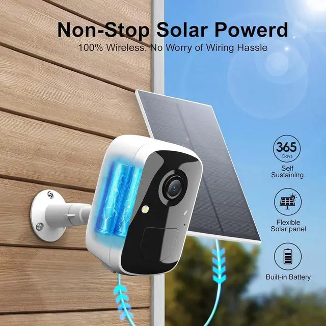 True Smart Security Camera: The solar security cameras wireless outdoor uses a more sensitive PIR sensor and advanced AI algorithm to intelligently detect heat and human motion, so you don't have to worry about receiving false alarms caused by flying insects, fallen leaves, etc. When the alarm is triggered, the camera will start recording, allowing you to quickly view important events, identify real threats, and improve monitoring efficiency.