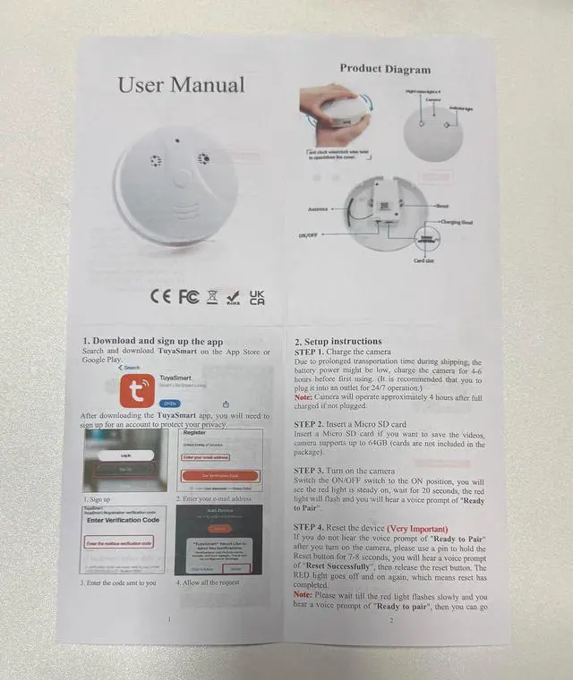 This nanny camera supports working while charging. When the camera is connected to a power source, you can start 24-hour long-term monitoring. It can be installed on the wall to disguise as a smoke detector (but it does not have the function of a smoke detector), which can better protect the safety of children, pets, and property at home