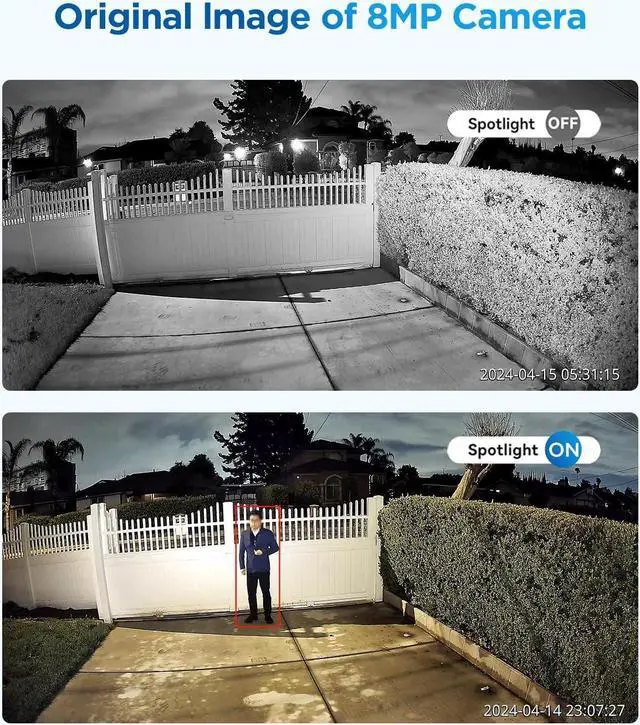 SMART NIGHT VISION MODE: The camera offers Black & White Night Vision, Full Color Night Vision, and Smart Dual-light Mode options. By default, it is set to Smart Dual-light Mode. When human or vehicle activity is detected, the system automatically switches to Full Color Night Vision to reveal more details. Once the subjects leave, it reverts to Black & White mode for energy-efficient operation.