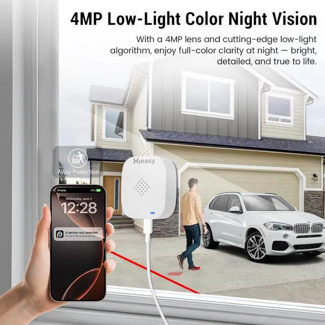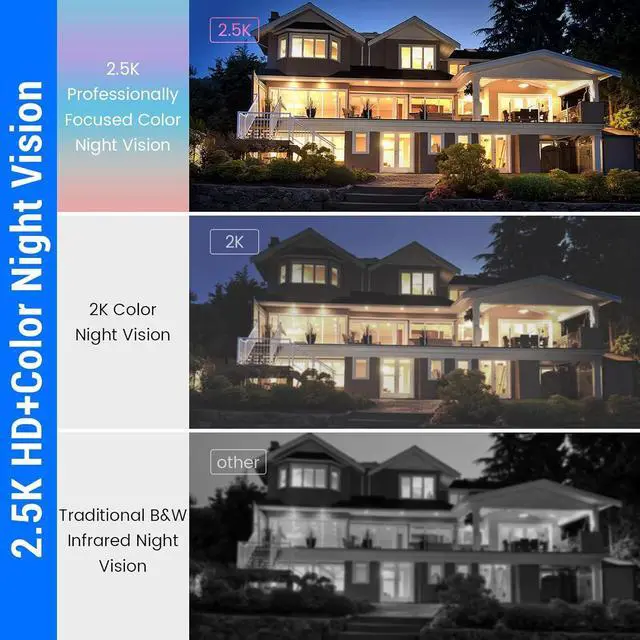 2.5K Ultra HD Picture Quality & Color Night Vision: Equipped with a 4-megapixel lens and 2.5K (2560×1440) ultra-high-definition resolution,it delivers stunning video performance; Even in low-light environments,it can excellently display full-color images,ensuring no critical details are missed and safeguarding nighttime security