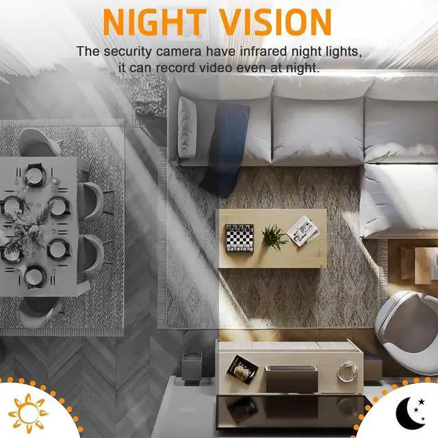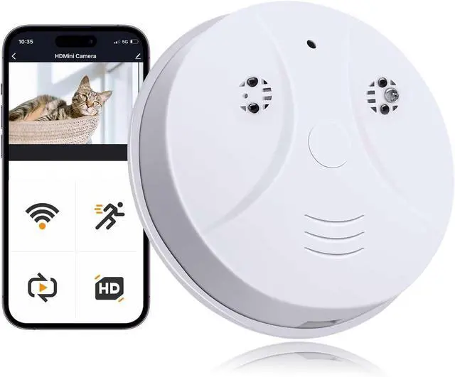 1080P HD & Night Vision: This smoke detector camera features a 1080P HD lens that clearly captures every detail. It even has night vision to record at night, so you can check indoor security at any time, without worrying about the safety of your private property, baby, elderly parents or pets