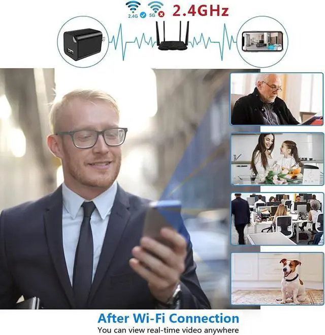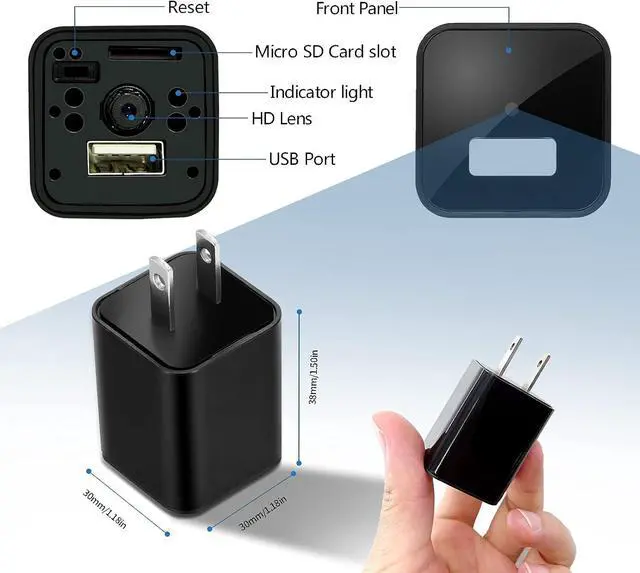 Wifi USB charger cameraThe appearance of our products is simple and fashionable, the appearance is black, not easy to be found, Once connected to the Wi-Fi network, users can remotely access live streaming video via an app, as small as the ordinary charger, safe and reliable, let you avoid the trouble of being found, to ensure home safety.