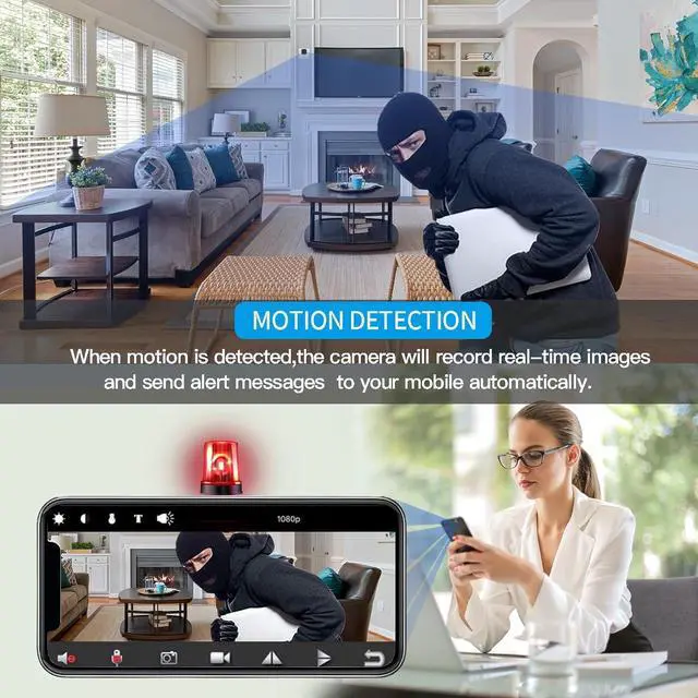 AI Motion Detection Technologies The mini camera has AI intelligent motion detection function, once the motion is detected, the mini camera will send an alarm notification with an image to your cell phone. You can log into the app to see what's happening in real time and never have to worry about missing important information again.