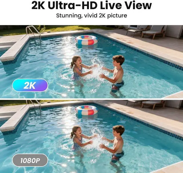 2K Ultra HD Clarity for Day and Night: Experience 2K UHD resolution and 4X zoom for sharper details and enhanced clarity. With advanced full-color night vision, the wireless cameras for home security captures clear and colorful images up to 50ft, even in deep darkness.