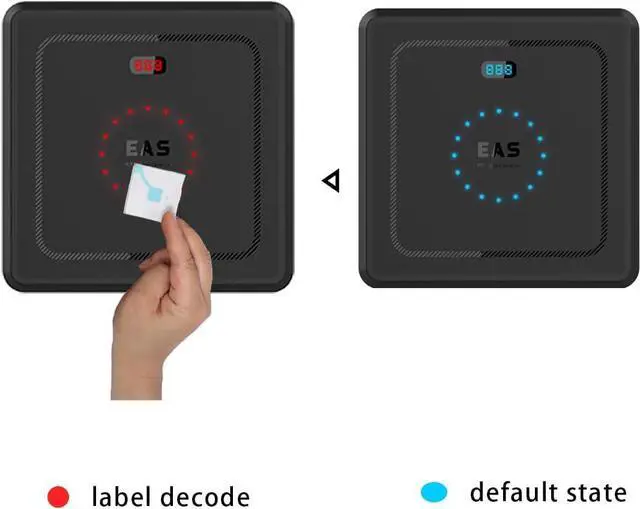 Audible and Visual Indicator - sound and light indicator when work,light change from blue to red when security sticker detected.The voice of machine is adjustable
