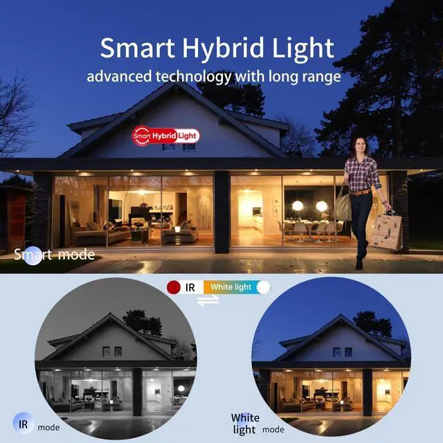 Smart Hybrid Light technology delivers exceptional long-range nighttime coverage. Upon detecting movement, it instantly activates a gentle warm light, switching video from black-and-white to full-color night vision for superior detail and a visible presence that encourages peace of mind. Customize your view through the app with 24/7 color mode or traditional infrared settings