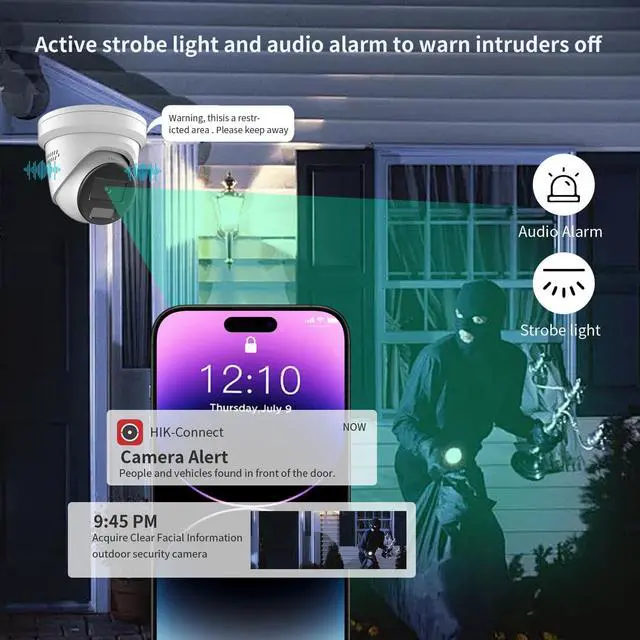 Active strobe light and sound alarm to warn intruders off. Featuring an integrated alert system with a bright strobe light and audible warning tone, this device actively discourages unwanted activity by providing immediate visual and sound notifications when movement is detected