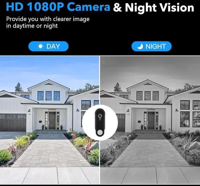 160° Wide Angle Lens & IP55 Waterproof & IR Night Vision & Motion DetectionDoor bell camera with screen monitor wireless has IR night vision function , you can clearly see the visitor's face no matter it is day or night. The doorbell camera's IP55 waterproof design makes it suitable for use in all weather conditions. 160º wide viewing Angle, you can see more corners outside the door. Once motion (within 5m) is detected, alerts will be pushed to your phone and monitor to ensure your safety.