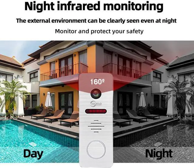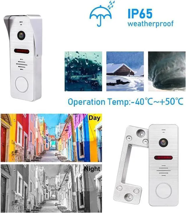 10 Inch Touch Monitor and 1080P Smart Doorbell: Doorbell with camera and monitor, 4 wired cables to connect the outdoor camera and indoor monitor.10" TFT display with clean design touch screen. The outdoor camera comes with IP65 waterproof cover and vandal resistant feature to prolong its life.1080P camera with 160º wide angle range gives you clear images day and night.24 hours protection for your family.