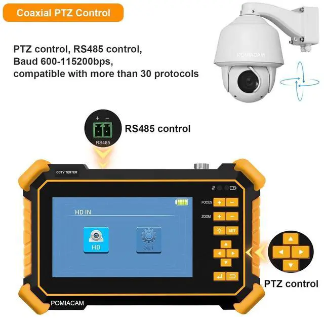 PTZ Controller and RS485 PTZ Control Supports Pelco D/P PTZ control protocol etc. Through the RS485 interface, users can control the pan/tilt up, down, left and right and zoom Adjust focal length etc. of the device aperture size. RS485 PTZ control, baud 600-115200 bps, compatible with more than 30 protocols such as PELCO-D/P