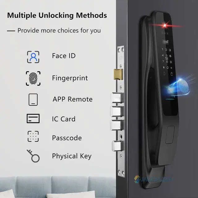 Integrated Wi-Fi for Remote Control: No matter where you are, see who's at the door via the doorbell camera and manage the lock through the Tuya app. Features include access management, generate temporary passcodes, real-time notifications, and a detailed event log.
