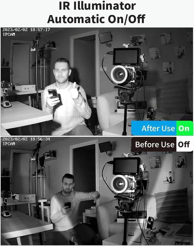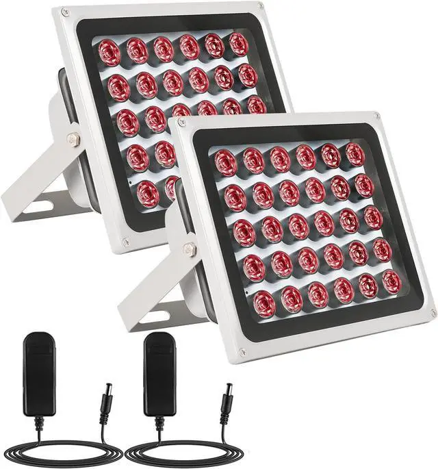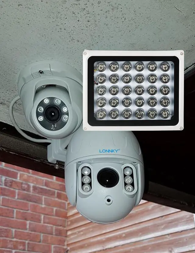 AUTO ON and OFF--This Lonnky Ir floodlight for security camera built-in with photocell sensor, the IR illuminator auto switch on at dusk and switch off at dawn, saving energy and secure long lifespan. Wave length 850nm infrared flood light, the beam light is INVISIBLE to naked eyes but give a red glow.