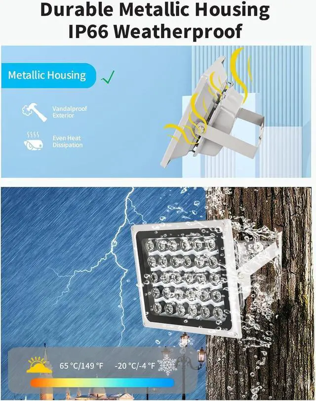 WATERPROOF IR SPOTLIGHT--IP67 waterproof, heavy duty aluminum housing, reinforced glass window, stainless steel screws all those secure long lifespan for outdoor use.