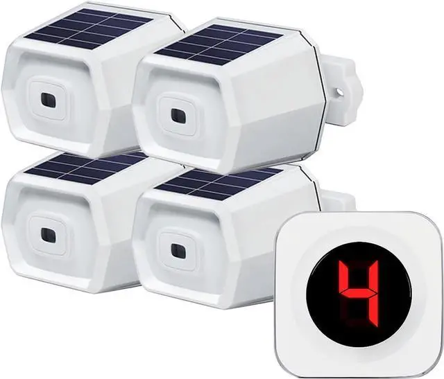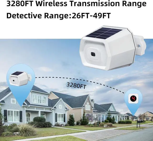 EASY TO INSTALLATION AND CUSTOMIZE: This solar driveway alarms system can be installed in just a few minutes! Simply place your sensor(s) (expands up to 4) where you want to monitor, and get a customized in-home chime the second a person, vehicle or large animal moves within 49 feet of your detection zone! For more information, please read the included instructions and Quick Start Guide carefully before use.