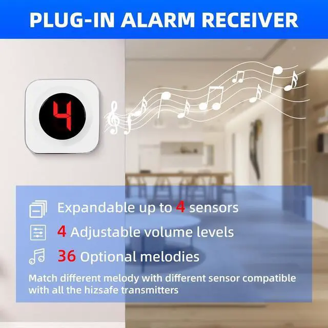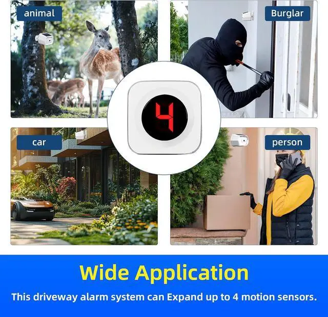 FULLY EXPANDABLE SYSTEM: This driveway alarm solar powered can expand up to 4 motion sensors and unlimited receivers for complete coverage of your property and match different melodies with different sensors to differentiate where motion is being detected(Such as the melody for the driveway alert is Driveway,and for the backyard alert is Dog Barks). This motion receiver has 36 different optional melodies.