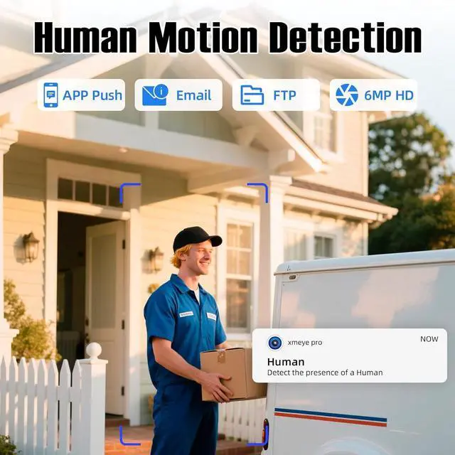 Smart Detection & Free App playback Thanks to the PoE technology, this security camera can load 6MP HD images in unparalleled stability,the camera can detect and closely follow the movements of people. Receive motion alert notifications and review footage via your smartphone with the xmeye pro app. Intuitive and easy-navigated software ensures you local/remote access to your property anytime, anywhere.This NVR supports up to 4 cameras recording simultaneously to the built-in 500GB HDD.