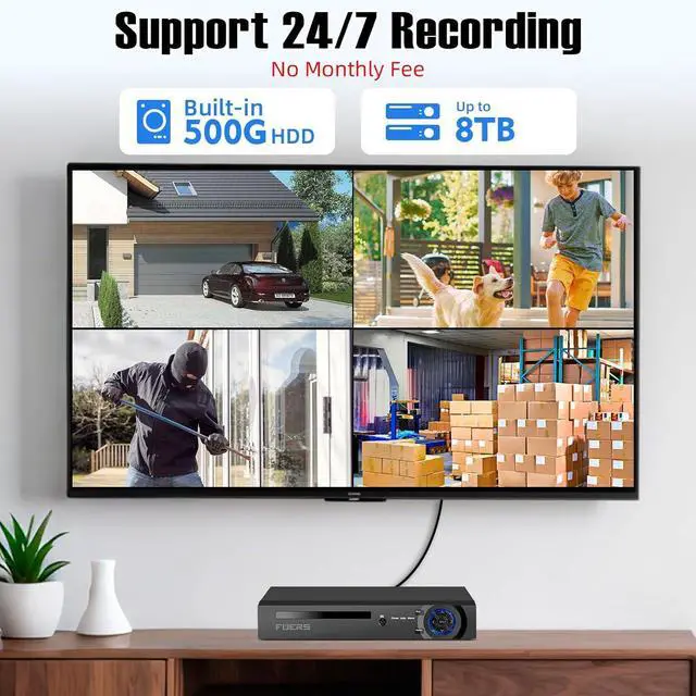 PoE Security Camera System, Plug & Play PoE with only one Ethernet cable for Fuers PoE Cameras to transmit both power and data. You can live view and access the cameras with or without the internet as PoE NVR can make an independently running system itself with the DHCP function. The PoE NVRs can integrate human detection & playback from IP cams to build an intelligent system.Intelligent search, app push,email,playback, and backup functions provide enhanced ease of use and security.
