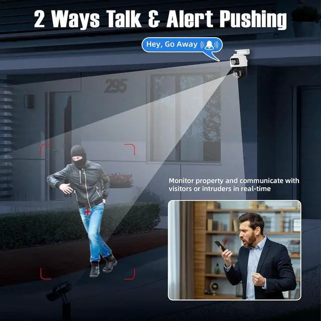 6MP HD Night Vision with Light Alarm & Two-Way Audio Our surveillance & security cameras have 3 light control modes, include full color/infrared night vision/double light warning which insure you can monitor your home clearly with the home security cameras even if in darkness at night,and if there is invaded, the light alarm of the outdoor camera starts and alerts message will send to your phone, and you can talk on your phone and nvr to the strangers on the security cameras.