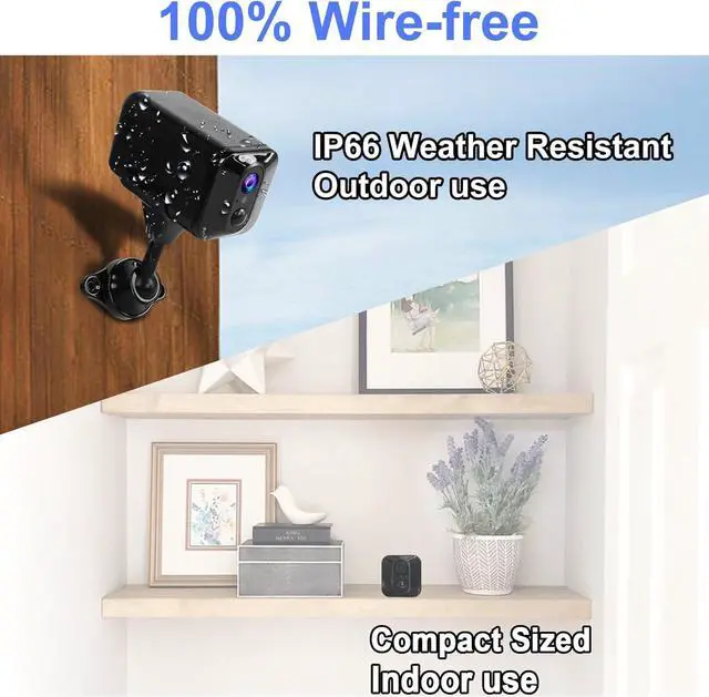 Weatherproof Indoor Outdoor Camera : WKX W-P3 mini outdoor security camera wireless features IP66 waterproof rating, which can be used for your backyard, birdfeeder and more outdoor uses. The compact sized can be also used for rooms and more indoor uses.
