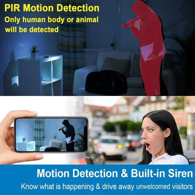 Smart Motion Activated Wireless Cameras for Home Security : WKX W-P3 wireless security camera outdoor equips with Advanced PIR motion sensor,the accurate motion detection feature detects human or animals only, sending real-time alerts to your smartphone app when motion is detected. Built-in Siren drives away unwelcomed guests.