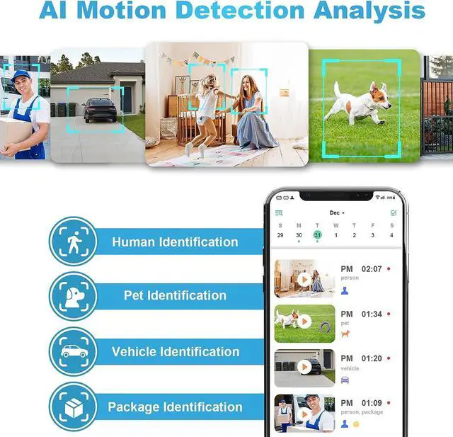 PIR MOTION DETECTION WITH AI ANALYSIS RECOGNITION: This outdoor camera wireless with advanced smart AI motions detection, it can clear analysis and recognition person, vehicle, pet and package. The AI PIR sensor will be triggered in real time once the outdoor security cameras detect motion, at the same time, the notification will be pushed to your phone via the app. And this security camera can be shared with multiple users.