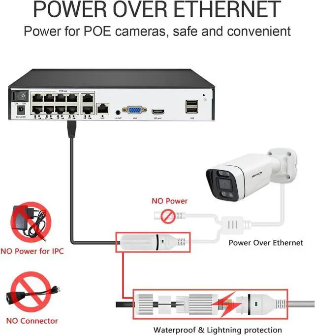 PoE Plug and Play NVR Security SystemPoE,Easy Setup with Plug & Play. A real plug and play network video recorder! It features POE (Power over Ethernet), with a single network cable connecting each of your IP cameras to the NVR for both power supply and video signal transmission. Intelligent search, playback, and backup functions provide enhanced ease of use and security.