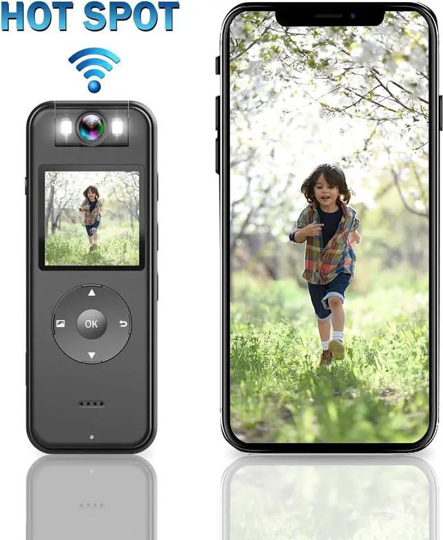 [HotSpot Body Camera and Time-Lapse Shooting] Body Camera has a hotspot function, where the phone connects to the device's network and accesses the images and video resources captured by the device and stored by the phone (limited to 32 feet). Body Camera Time-lapse feature requires you to turn on this feature in the settings menu (on or off), to shoot in double the fast time, to meet the user's need to use more resources based on the scene.