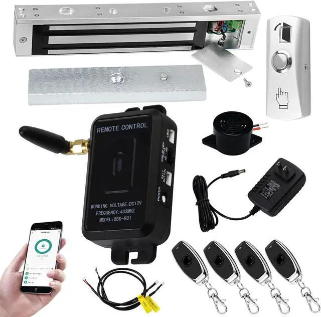 PACKAGE INCLUDING Smart Access Controller + Buzzer + 280KG Magnetic Lock + Indoor Exit Button + 4 Remote Transmitters + DC 12V Power Adapter + Cables and Screws + User Manual