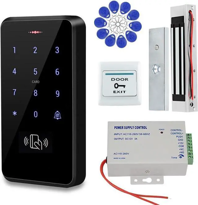 5) Package including IP68 Waterproof access control keypad + 180KG electric magnetic lock + power supply + door exit button + 10pcs Keyfobs.Widely used in Home/ hotel/ office/ apartment/ factory, etc
