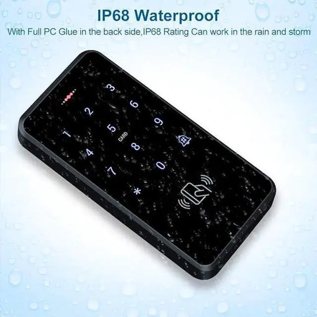 2)Touch panel. The access control keypad is IP68 waterproof, can be used outside. Has a WG26/34 interface,door bell button,and backlight.