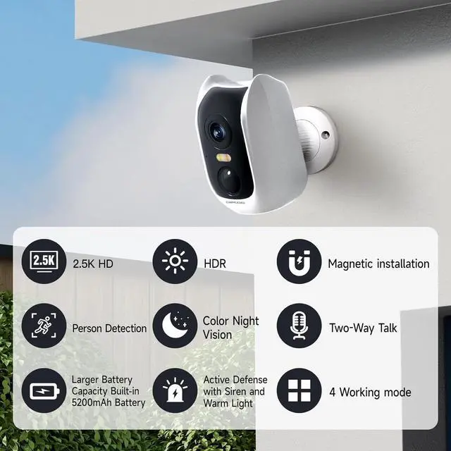 100% Wire-Free & Flexible InstallationThis wifi camera outdoor wireless camera boasts a powerful 5200mAh rechargeable battery for long-lasting, wire-free use. With 2.4G WiFi connectivity, it enables smooth real-time monitoring and remote access via mobile devices. Its magnetic camera base allows easy installation, making it ideal for any wireless security camera system, whether indoors or outdoors, this outdoor camera wireless ensures reliable home surveillance