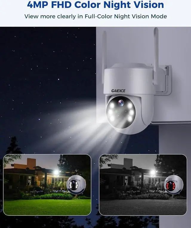 4MP HD Image & Stunning Full Color Night VisionSolar camera With its 4MP(2560*1440, almost 2 times than 2K) high-definition lens, powerful white spotlight and built-in infrared LED array and high quality full-color night vision capabilities, whether it's daylight or darkness,advanced color night vision technology allows you to enjoy vivid and accurate colors even in low-light conditions.