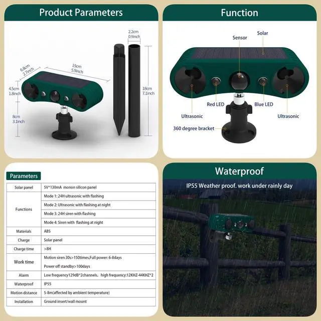 VersatileIdeal for homes, orchards, buildings, farms, warehouses, and more to drive animals away and other unwelcome intruders out of your garden