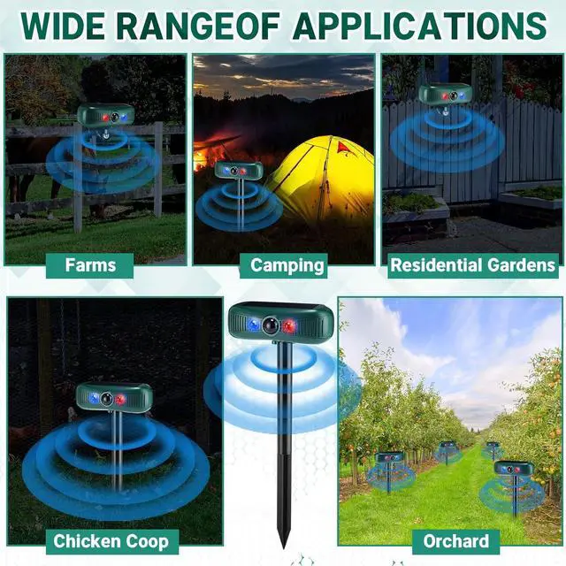 Energy Saving: our solar motion sensor alarm uses sunlight as its power source, a renewable energy that is energy efficient; Prepare it with a full charge under strong sunlight and it will operate without a need for a battery change, providing a reliable barrier to deter deer, wolves, rabbits and other creatures from invading your property