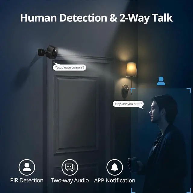 QNINE Outdoor Security Camera 2 Pack, 2K Wireless Cameras with 2-Way Audio, Motion Detection, Waterproof, Color Night Vision, TF/Cloud Storage (up to 256GB), Alexa Compatible