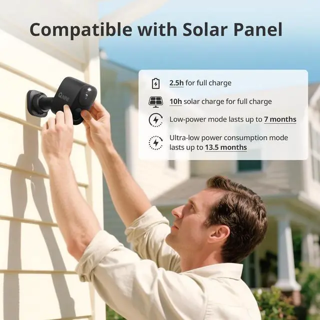 • - Long-lasting Battery Life: Equipped with a 5000mAh rechargeable battery, this security camera offers up to 22 months of standby time on a single 3-hour charge, ensuring continuous protection even when you're away on business trips. IP66 waterproof and d