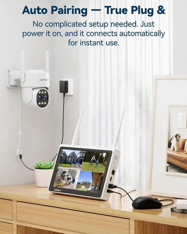 All-in-One NVR Security Camera System with Monitor: 10 channels NVR features a built-in 10" LCD screen + 500GB HDD, making it a complete security camera system with monitor. No extra displays needed! Supports 24/7 recordingideal for home security camera system wireless setups and easy home security systems installation