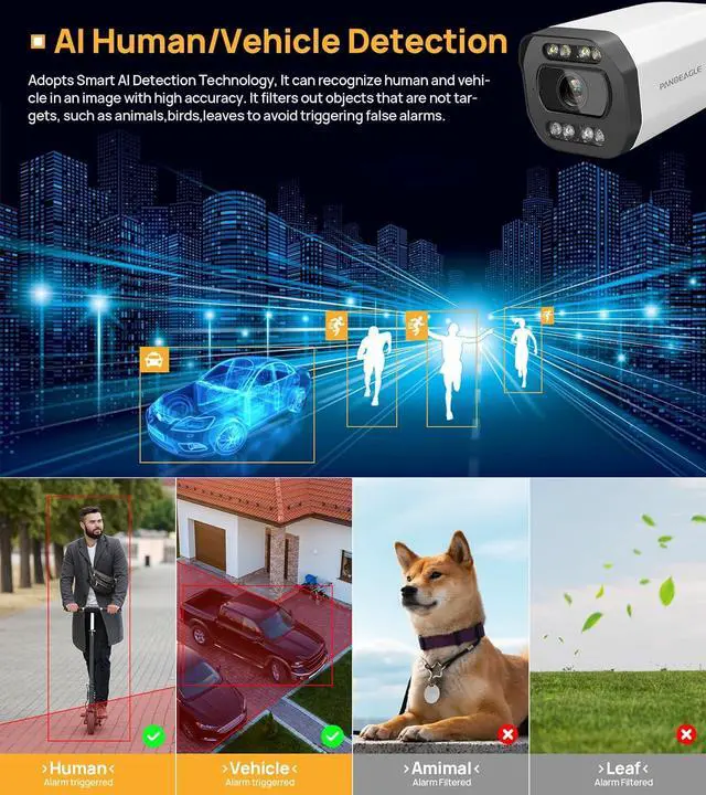 Human/Vehicle Detection & Two Way Audio: The 5mp bullet camera equipped with professional human/Vehicle detection functions, the detection area or sensitivity can be adjusted to effectively reduce false alarms. When person enters the video area, the camera will automatically detect and send the real-time video/snapshot to your mobile phone built-in 2-Way Audio allow you to hear the people in front of the camera no matter where you are.Support Micro SD card storage (up to 256GB)