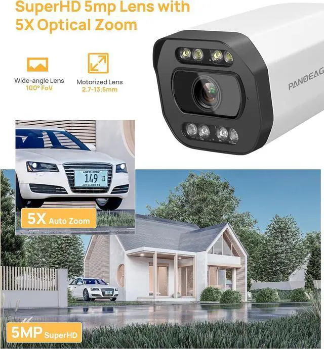 5MP Super HD Resolution with 5X Optical Zoom: This 5mp poe ip bullet camera is equipped with 1/2.8 inch progressive scan CMOS 5MP(2592x1944)@30fps CMOS, providing super stunning image quality all day long. Support Micro SD card storage (up to 256GB), equipped with 2.7-13.5mm 5x optical zoom motorized lens,it can achieve 5x optical zoom to capture more details.