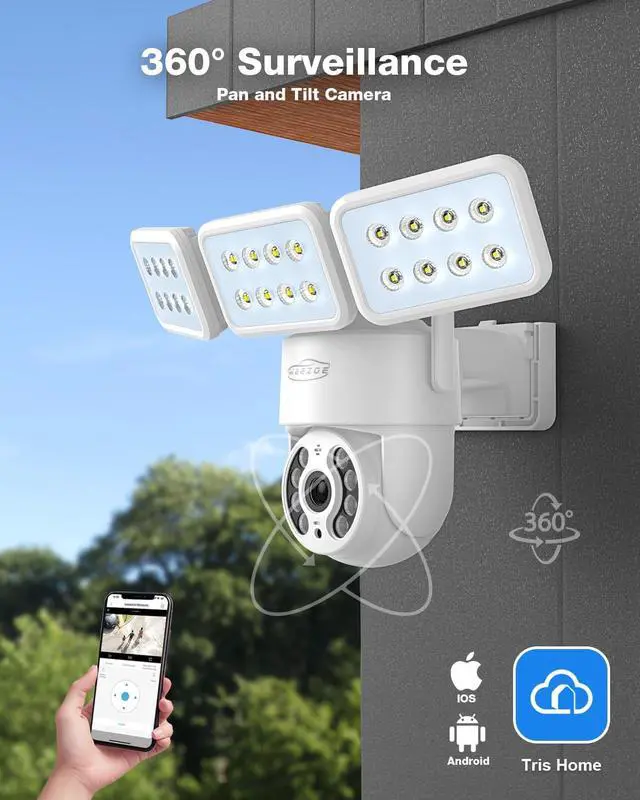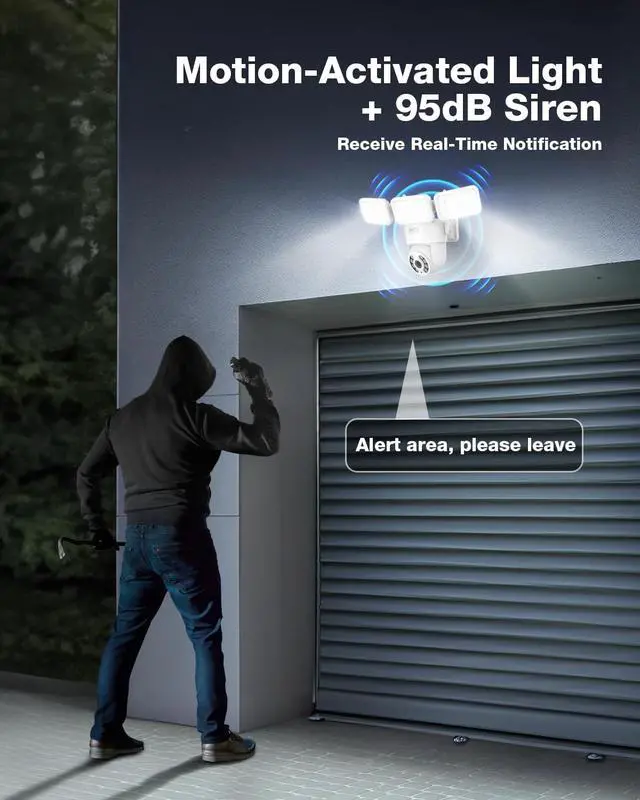 Real-Time Alerts & Dynamic Siren: Stay informed and secure with our floodlight camera's instant notifications triggered by humanoid or motion detection, promptly delivered through the Tris Home app. Receive timely alerts accompanied by photo and video footage, ensuring you're always in the know. Deter intruders effectively with the powerful 95dB siren alarm, designed to scare off unwanted visitors. Benefit from the PTZ camera's automatic tracking feature, which follows intruders until they leave the camera's range. Customize your security settings, including the siren, effortlessly via the Tris Home app for tailored protection.