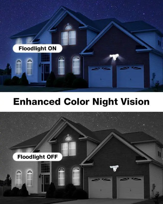 Exceptional 2.5K FHD Resolution with Color Night Vision: Our home security camera boasts a 4MP 160° wide-angle lens, delivering stunning 2400x1200 resolution for crystal-clear footage. Capture details from up to 100 ft (30 m) away and stream seamlessly to your Tris Home app in real-time, eliminating blind spots. Even in low-light conditions, the floodlight camera ensures perfect details and vibrant colors, thanks to its 2000 Lumens adjustable 3 LED light panel. : 5/2 .