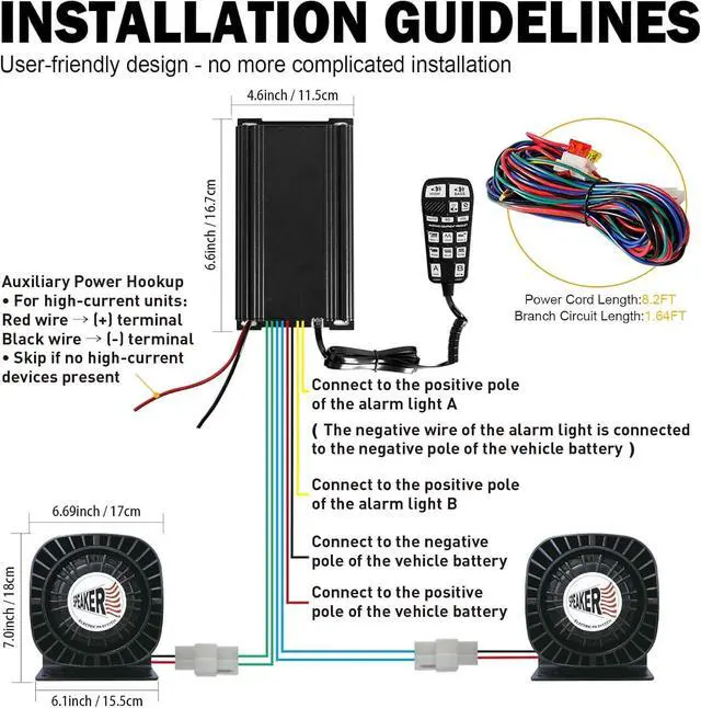 Multiple operation options:The warning electronic alarm horn system features more than 30 different siren tones, in which you can choose depends upon your use and needs. You also get a push to talk microphone. Pre-wired unidirection microphone with PTT (push to talk) button overrides the car alarm siren during time of usage