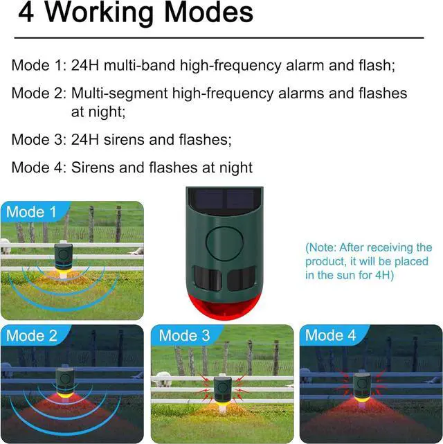 [4 Modes Function] our strobe light alarms offer 4 modes: 24H multi-band high-frequency alarm and flash; Multi-segment high-frequency alarms and flashes at night; 24H sirens and flashes; Sirens and flashes at night.