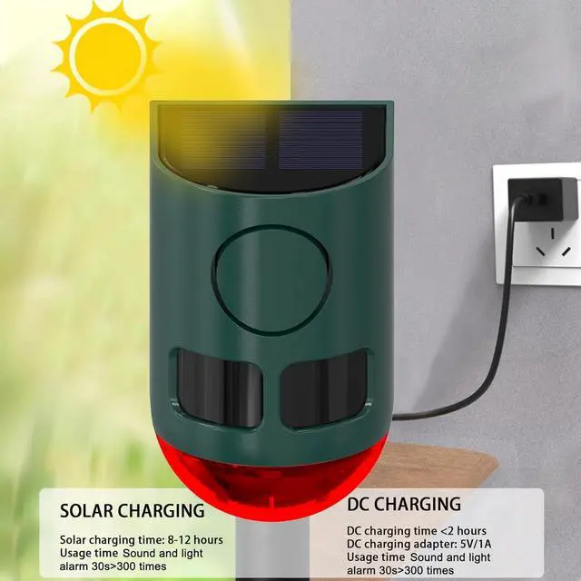 [Easy Installation&Widely Use] Please hang intruder deterrent alarm where get enough sunlight. The barking dog alarm motion activated is suitable for farm, coop, barn, camping, home, garden, yard and other places where need motion alarm with siren.
