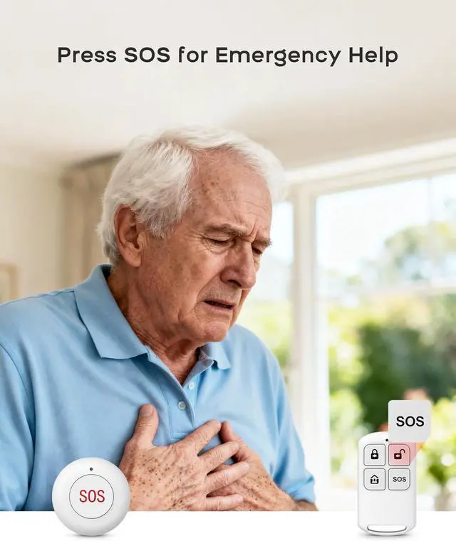 Alarm System for Home Security: The wireless home security system 20-piece set includes 1 host, 5 motion detection, 10 door/window sensors, 3 remote controls, and 1 SOS button, suitable for 3~5 bedroom homes.