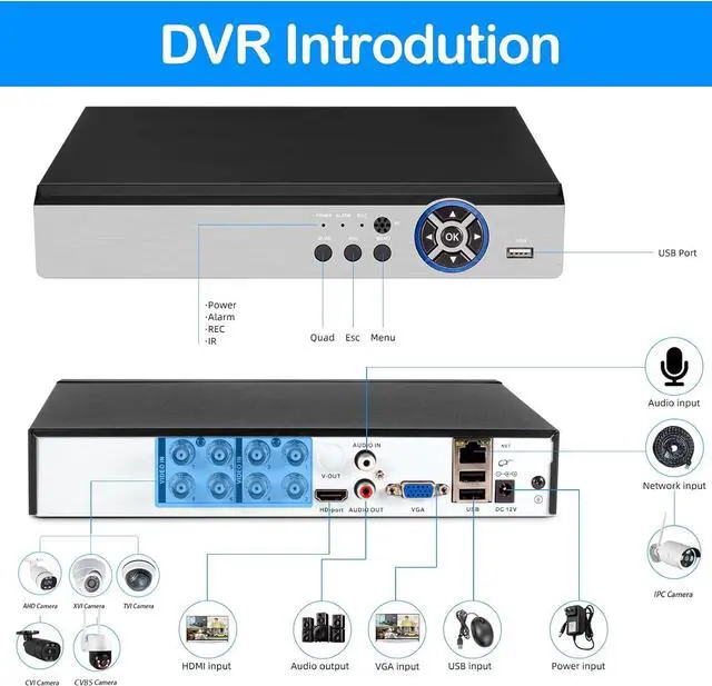 8 Channel dvr Only - Quick Setup: It supports VGA/HDMI output simultaneously.VGA Output connect to PC,HDMI Output connect to TV. Featuring Auto-Pair technology, plug the camera and DVR power supply into outlet nearby, connecting DVR box to a monitor, youll get a sharp and crisp image day or night smoothly. If our dvr security camera system for home security have any quality problems or any installation and connection problems, you can contact us at any time.