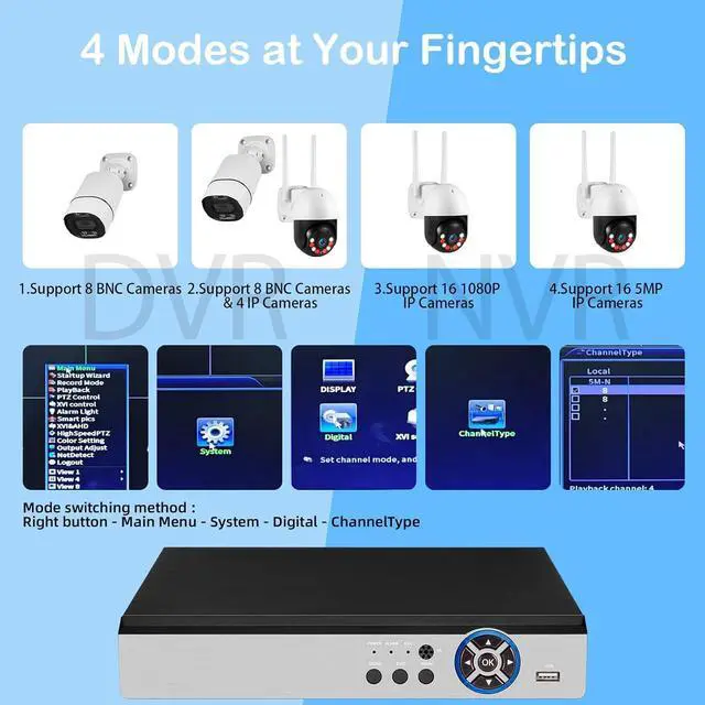 6-in-1 5MP Lite Security DVR 8 Channel dvr for Security camera,with 500G Hard Drive.the expandable DVR combines the features of DVR/NVR/HVR, supports up to 8 pcs TVI, AHD, CVI, XVI, CVBS, IP cameras. It's equipped with multiple features such as night vision, Smart snapshot, Email Alert ,Playback face search,remote monitoring and motion detection alerts.So, you have full-range choices for your property security.