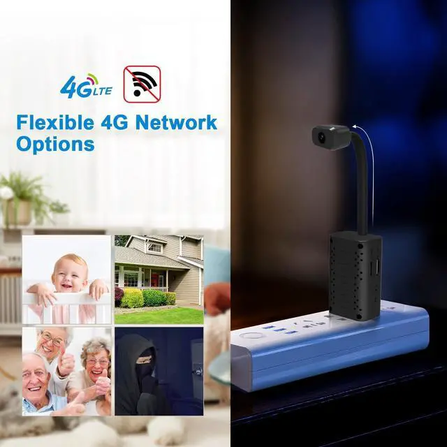 Innovative Plug-and-Play DesignThe sleek, flexible 4G security camera effortlessly adjusts to the optimal shooting angle. Simply plug it in to enjoy a wireless setup experience.